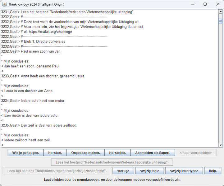 Selecting the Dutch language in Thinknowlogy: Click <change language>, click Nederlands, and click Herstart.